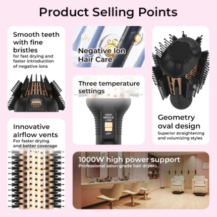 Dual Air Outlets: Streamlined + Metal Comb for 3D Styling
